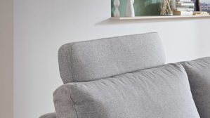 hellgrauer Flachgewebebezug und chromfarbenes Metall