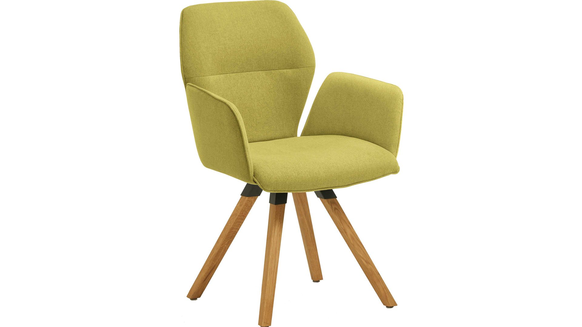 Der Armlehnstuhl Merlot präsentiert sich modern, kreativ und stilvoll designt. Er kombiniert einen grünen Webstoffbezug mit einem Stativ-Gestell aus massivem Wildeichenholz und schwarzen Akzenten. Das Echtholz sorgt für eine stabile Basis sowie für natürliches und warmes Flair im Esszimmer. Dazu trägt auch der erfrischende Farbton des hochwertigen, angenehm weichen Stoffbezugs bei. Überdies unterstreicht die spezielle Formensprache des Gestells die originelle Ausstrahlung des Vierfußstuhls.