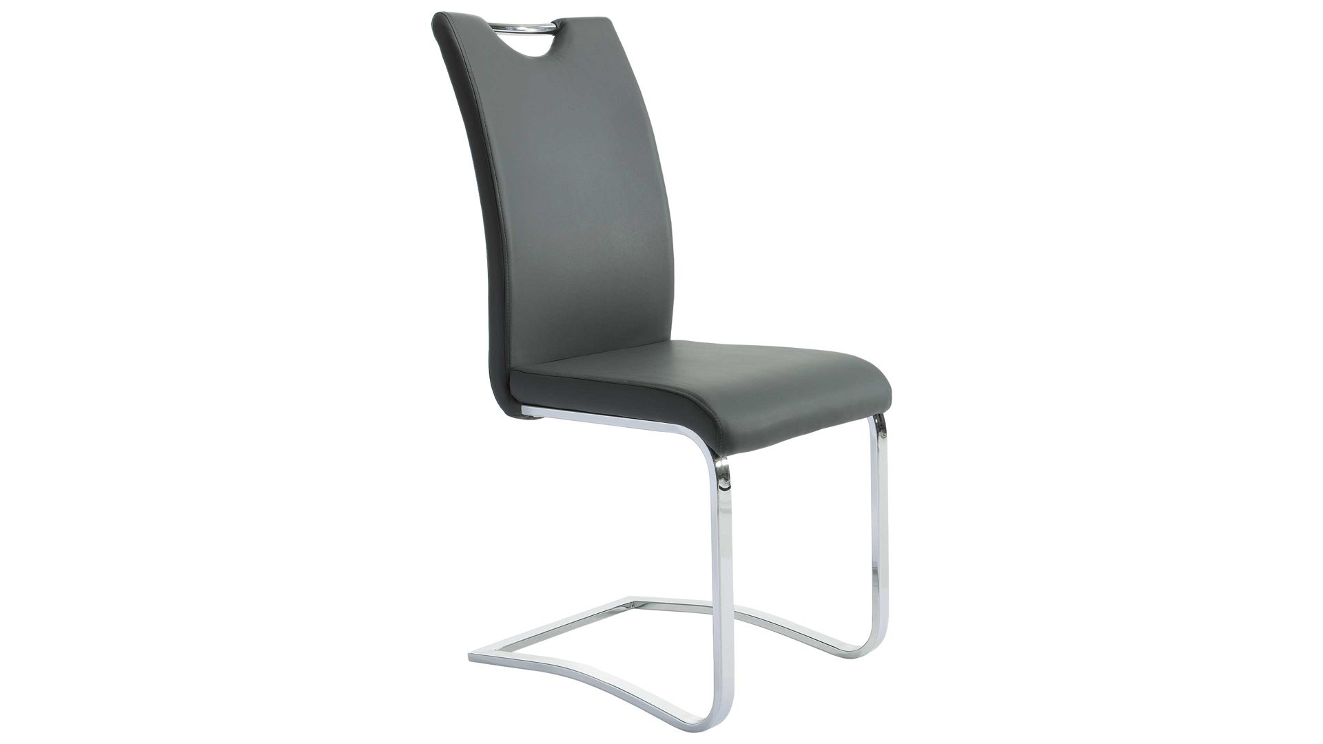 Der Schwingstuhl Köln im modernen, schlanken Design ist durch seine dezente Farbgebung in dunklem Grau vielseitig kombinierbar. Der aus hochwertigen Kunstleder bestehende Sitz garantiert Ihnen dank seiner Polsterung einen hohen Sitzkomfort. Er steht auf einem Gestell aus verchromtem Flachrohr.
