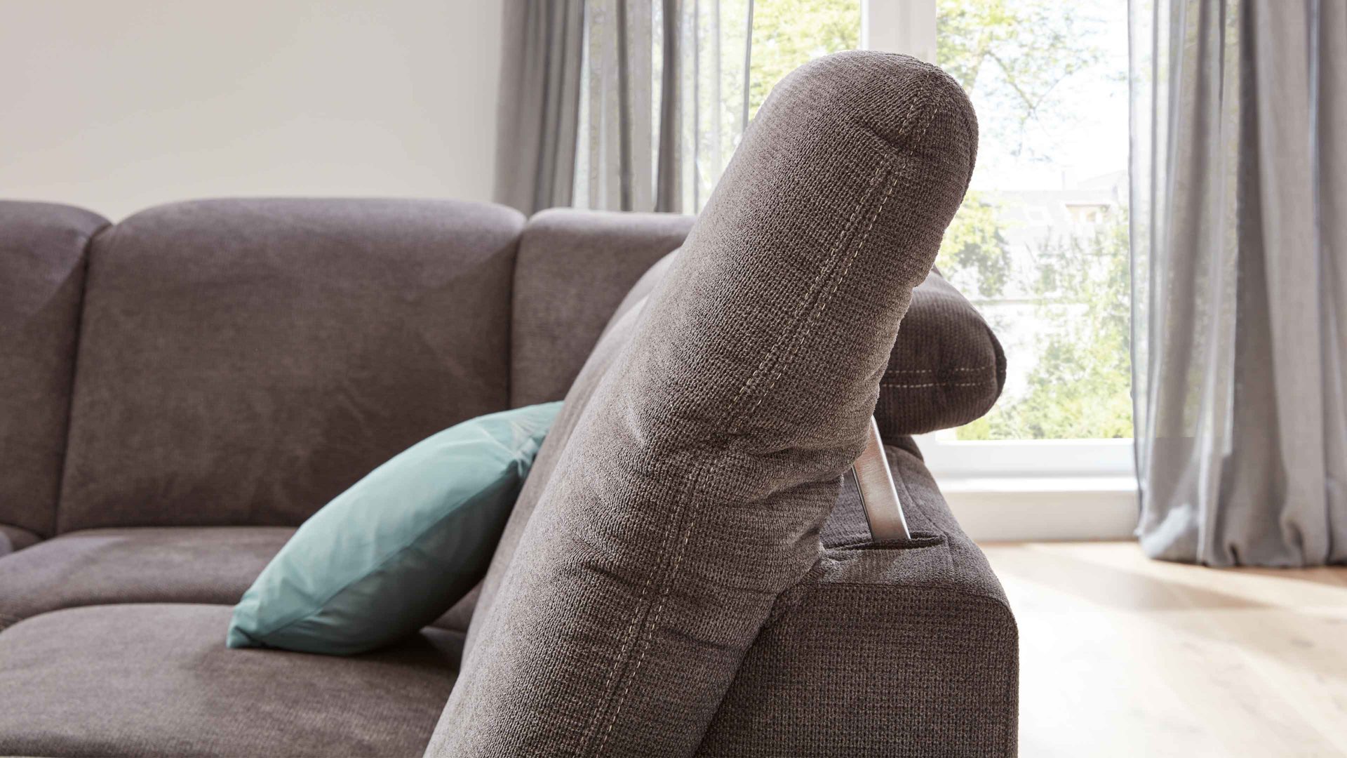 Die Kopfteilverstellung ist ein komfortabler Funktions-Mehrpreis für diverse Möbel aus dem Modulmaster-Polsterprogramm MM-ZE1106. Mittels Rasterbeschlag können Sie das Kopfteil und damit die Gesamthöhe der jeweiligen Couch variabel von ca. 83 bis 106 cm verstellen. Es handelt sich hierbei um eine manuelle Funktion mit Faltenoptimierung.