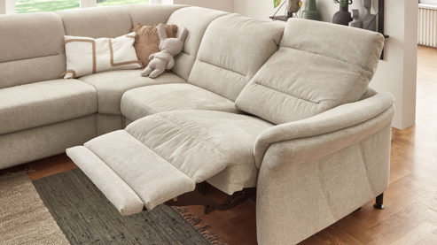 Während die Beinauflage auf Sitzhöhe fährt, bewegt sich der Sitz einige Zentimeter nach oben und vorne, was zu einer Relaxposition führt. Daraufhin fährt der Rücken weiter bis zur Liegeposition und nimmt den Sitz mit - Letzterer begibt sich noch ein Stück nach oben und vorne. Der Rücken bleibt dabei stets wandfrei - daher rührt der Name dieser Funktion. Zusätzlich können Sie das Kopfpolster motorisch stufenlos verstellen.