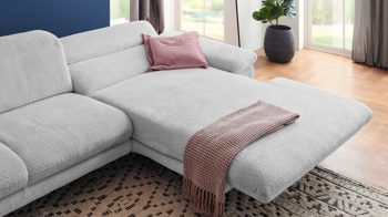 Ecksofa modulmaster aus Stoff in Hellgrau Modulmaster VS-MP1171 - Ecksofa silberfarbene Chenille Kama - Stellfläche ca. 306 x 196 cm