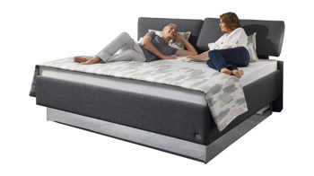Sie erhalten das Polsterbett mit zwei Federholzrahmen, die jeweils 36 Leisten aufweisen und mittels Gasdruckfeder hoch- und runtergeklappt werden. Darüber hinaus sind zwei Tonnentaschenfederkernmatratzen mit jeweils 1000 Federn, einer Liegefläche von ca. 90 x 200 cm (BxL) und einer Höhe von ca. 22 cm im Lieferumfang inbegriffen. Dabei stehen Ihnen die Härtegrade H2 und H3 preisgleich zur Wahl. Insgesamt beträgt die Liegefläche also ca. 180 x 200 cm (BxL). Die Maße des edlen Polsterbettes belaufen sich auf ca. 193 x 108 x 222 cm (BxHxL). Zu den funktionalen Highlights gehört das mehrfach nach vorne verstellbare Relax-Polsterkopfteil - damit Sie auch dann Komfort im Bett genießen, wenn Sie noch nicht liegen, sondern sitzen, etwa beim abendlichen Lesen oder Fernsehen.