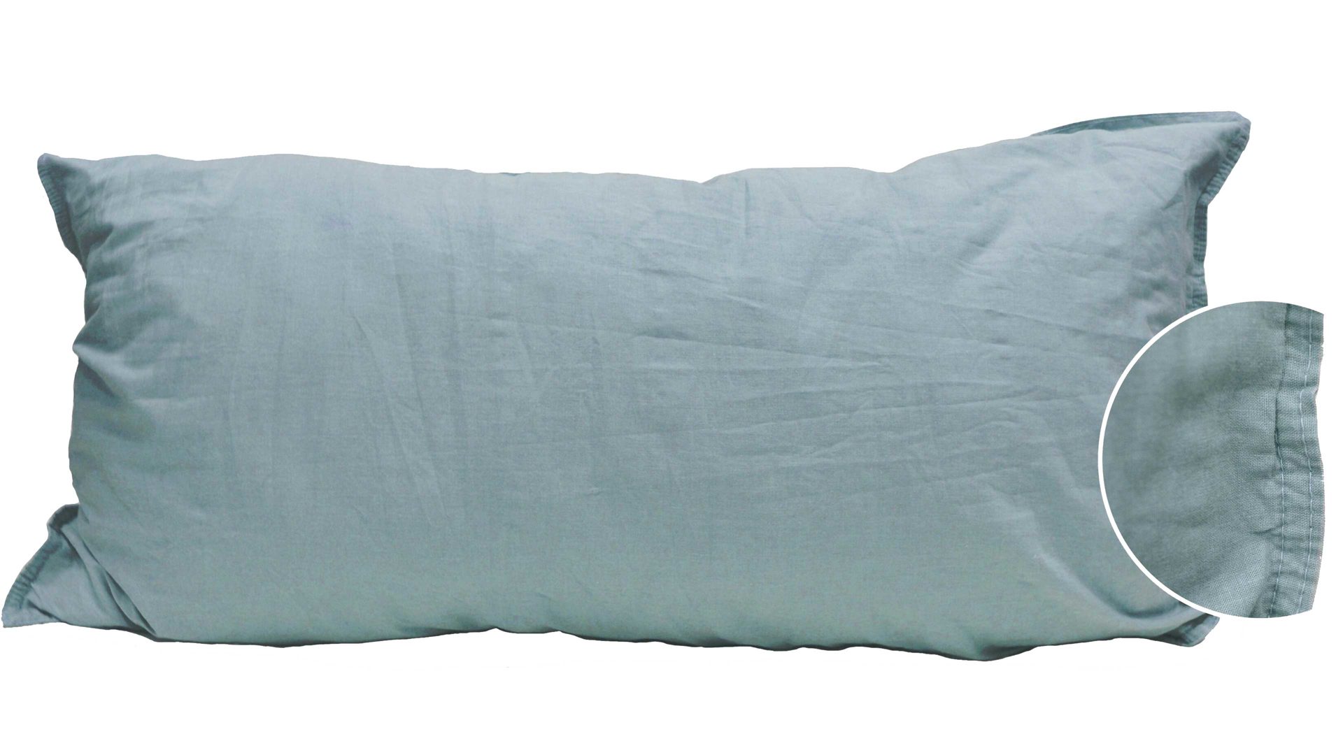 Waschen Sie den Kissenbezug bei 60 Grad und trocknen Sie ihn im Schongang des Wäschetrockners. Der Bezug hat Maße von ca. 40 x 80 cm (BxL) und eignet sich somit perfekt für Nackenkissen. Die Kissenbezug ist in vielen weiteren Farben erhältlich.